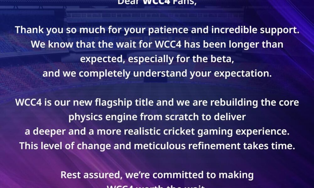 WCC4 Delay: What’s Really HappeningAfter a long wait, the WCC4 team finally shared an update, and it gives a clear picture of why the game is taking time. They openly said that development has been slower than expected, especially for the beta, and they understand the frustration from players. But the main reason behind this delay is not small. They are rebuilding the core of the game from scratch.